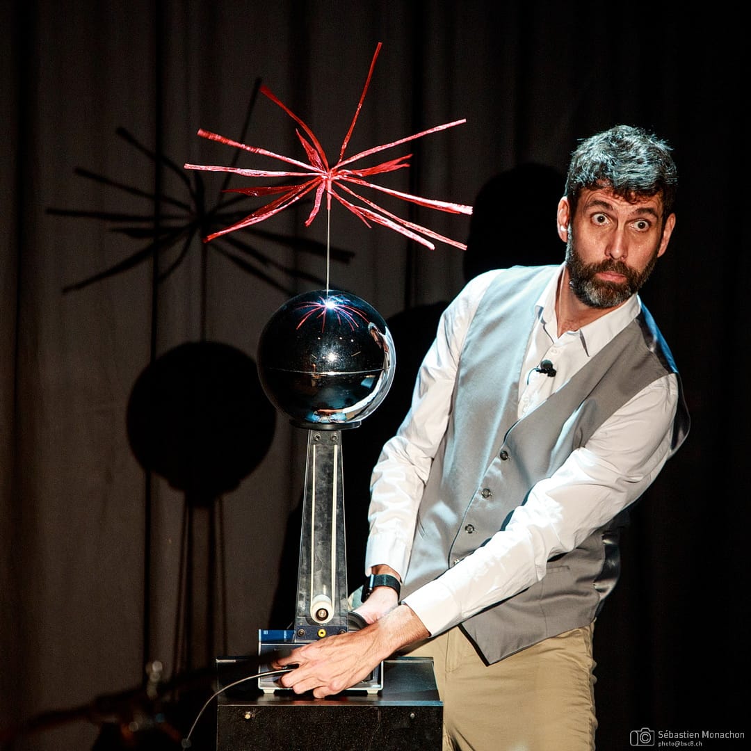 Des expériences partagées sur scène avec les enfants apportent tantôt des explications, tantôt de nouveaux questionnements. Démonstrations et contes s’entremêlent et tissent un univers enjoué entre réel et imaginaire. Finalement, chacun·e quitte la salle en connaissant quelques principes scientifiques supplémentaires et avec l’envie de s’intéresser au monde qui l’entoure.